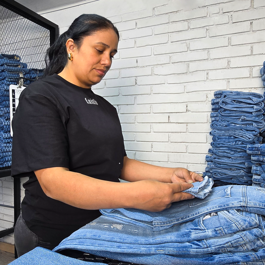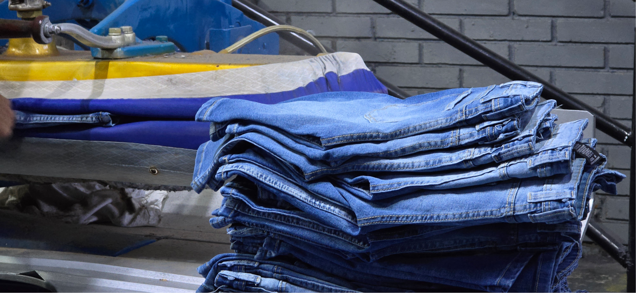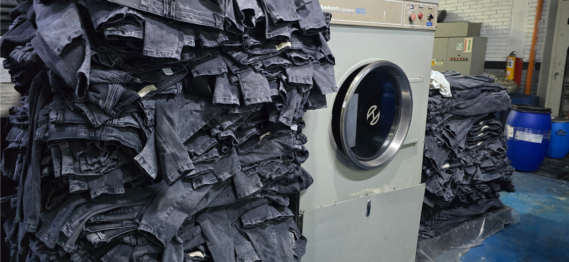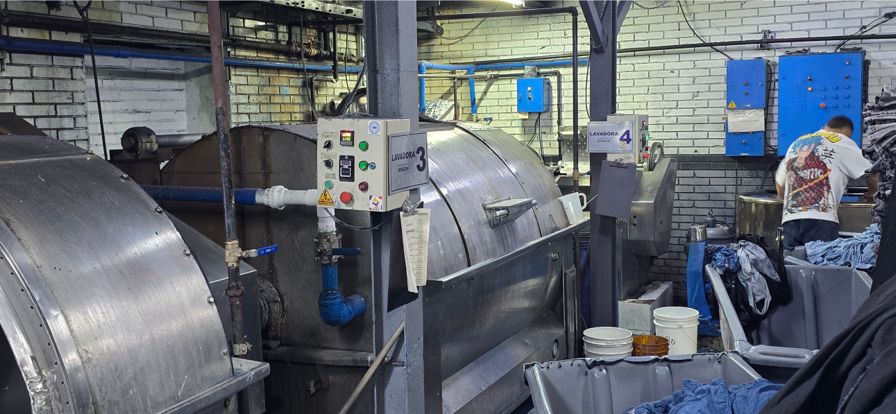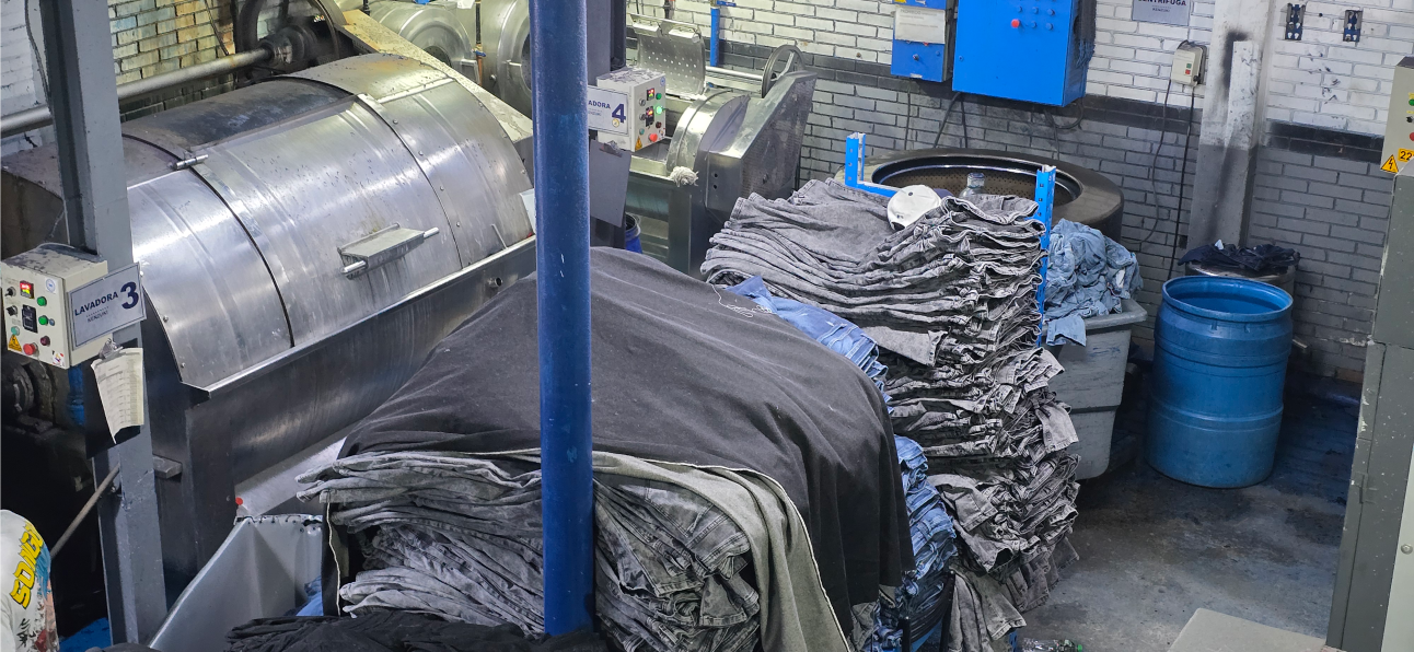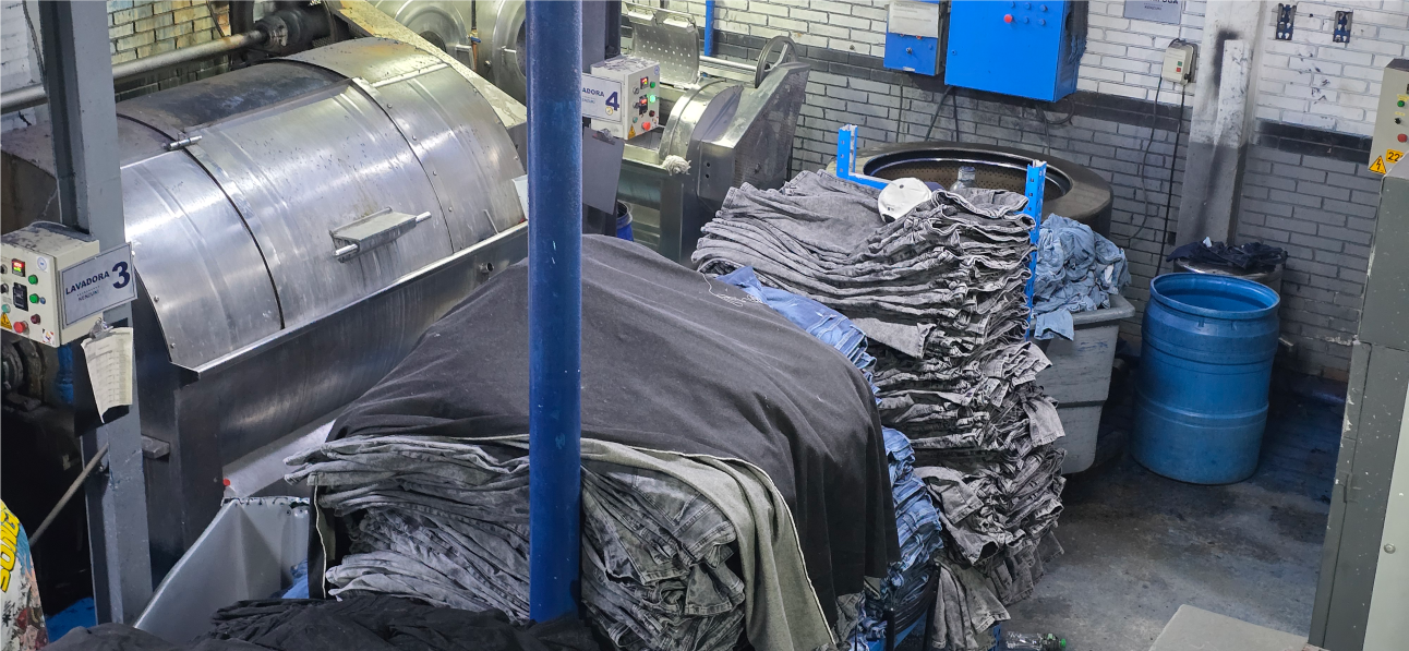 La lavandería es donde sucede la magia: Aplicamos procesos especiales que le dan carácter y concepto a cada pieza. Lijados, desgastes, teñidos y acabados únicos que hacen que cada prenda no solo luzca bien, sino que cuente una historia.