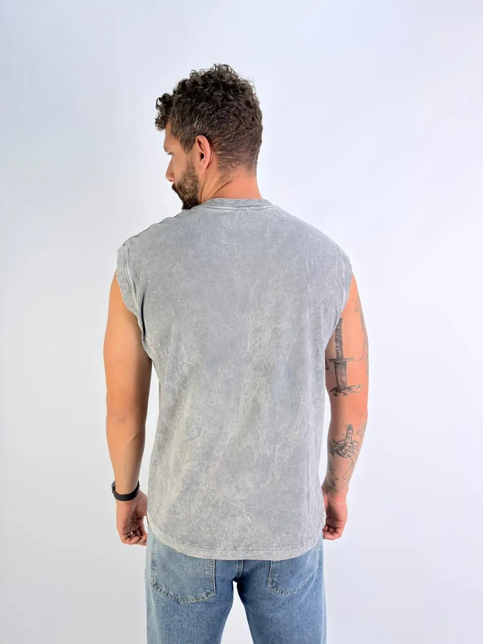 Camisilla en algodón premium combina comodidad, estilo y un acabado único gracias a la técnica acid wash, que le da ese efecto desgastado y vintage que nunca pasa de moda.