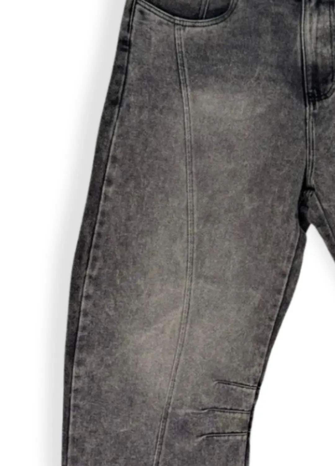 Con cortes laterales y detalles de pinzas en la rodilla hacen que este jean