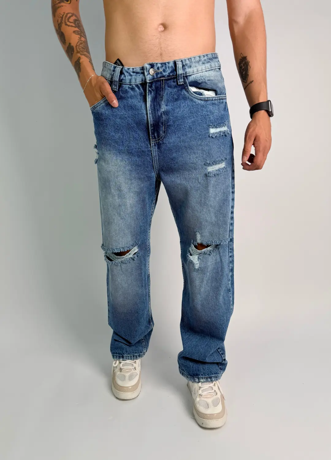 Con rotos y un fit amplio en un lavado con desgaste natural, este jean brinda